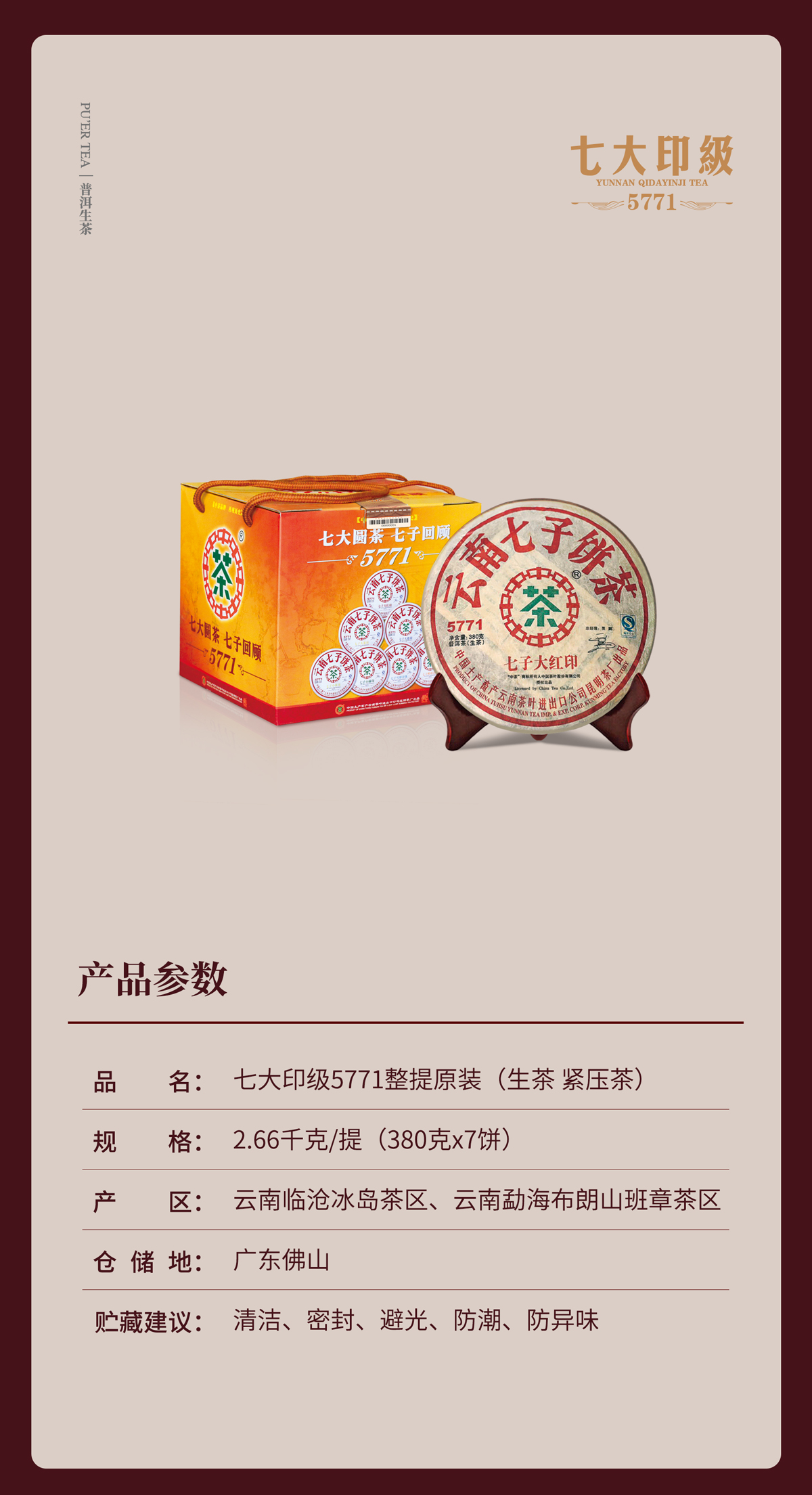 | 规 格 | : | 380g/饼、7饼/提 |