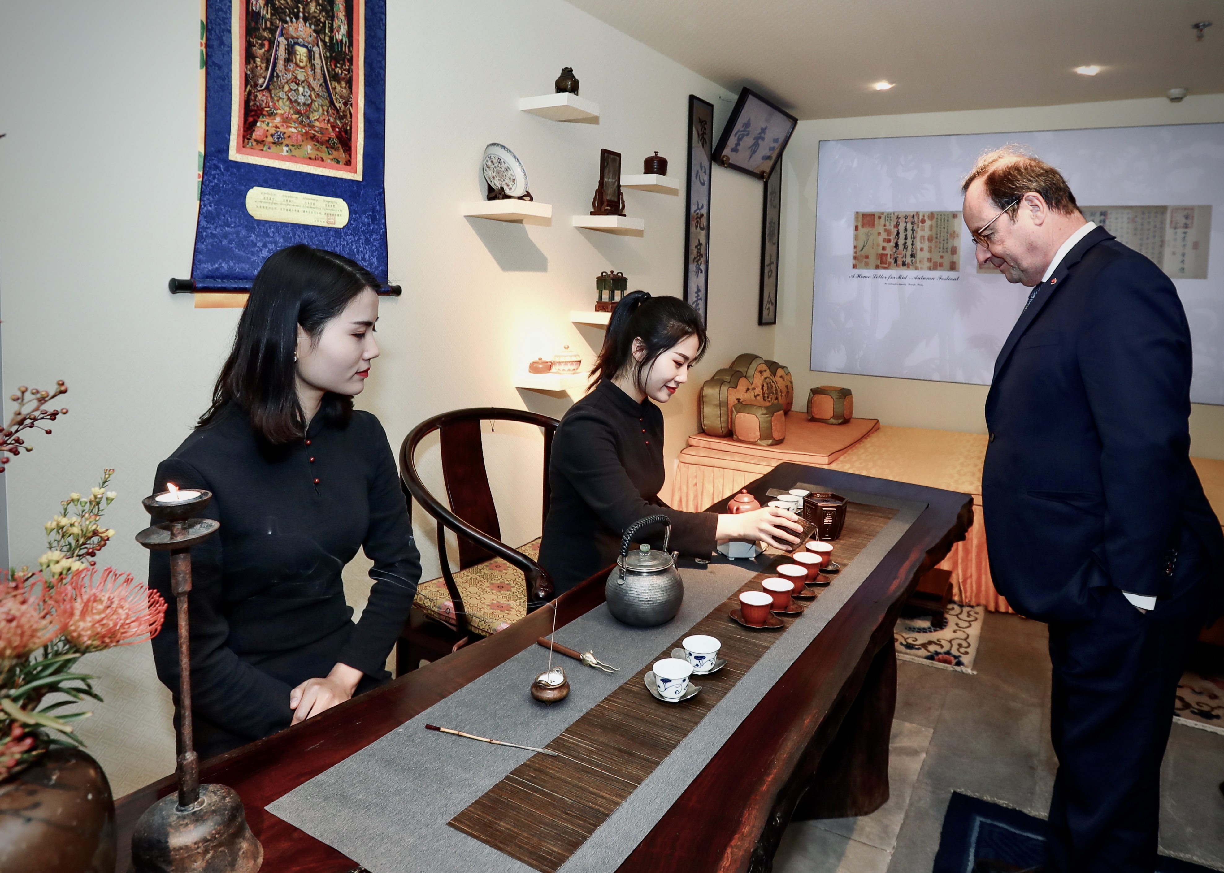 ·奥朗德,并共同品尝天月珍藏5771普洱茶。