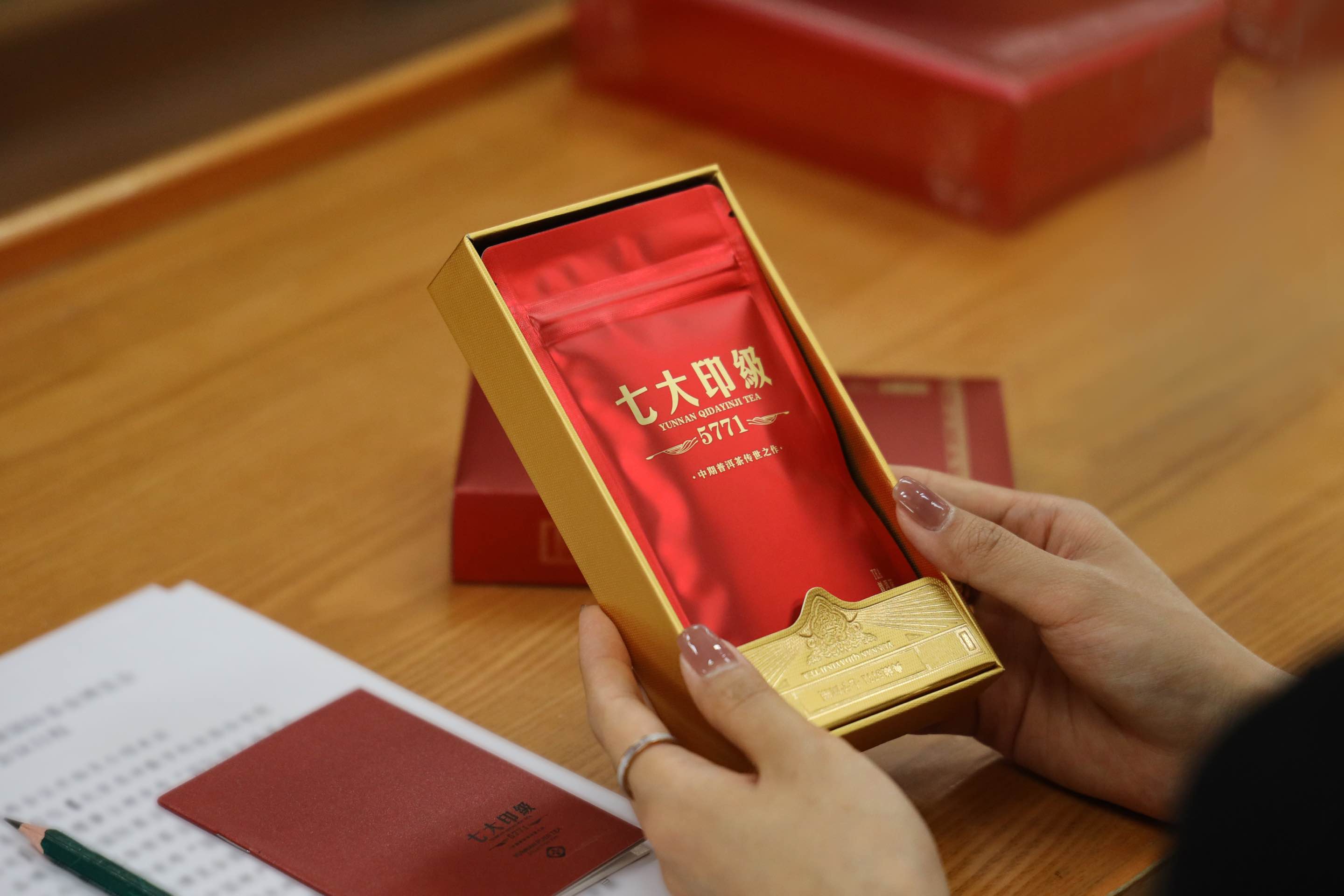 2023年,七大印级5771在传统的普洱茶饼形态基础上,推出品质商务礼盒及精品礼盒,独立包装,简单便携,更加符合现代商务人士饮茶需求,也便于年份普洱茶在更多的场合流通,助力中国当代普洱茶产品形态的多样化,倍增其厚积薄发、绵延不绝的生命力。