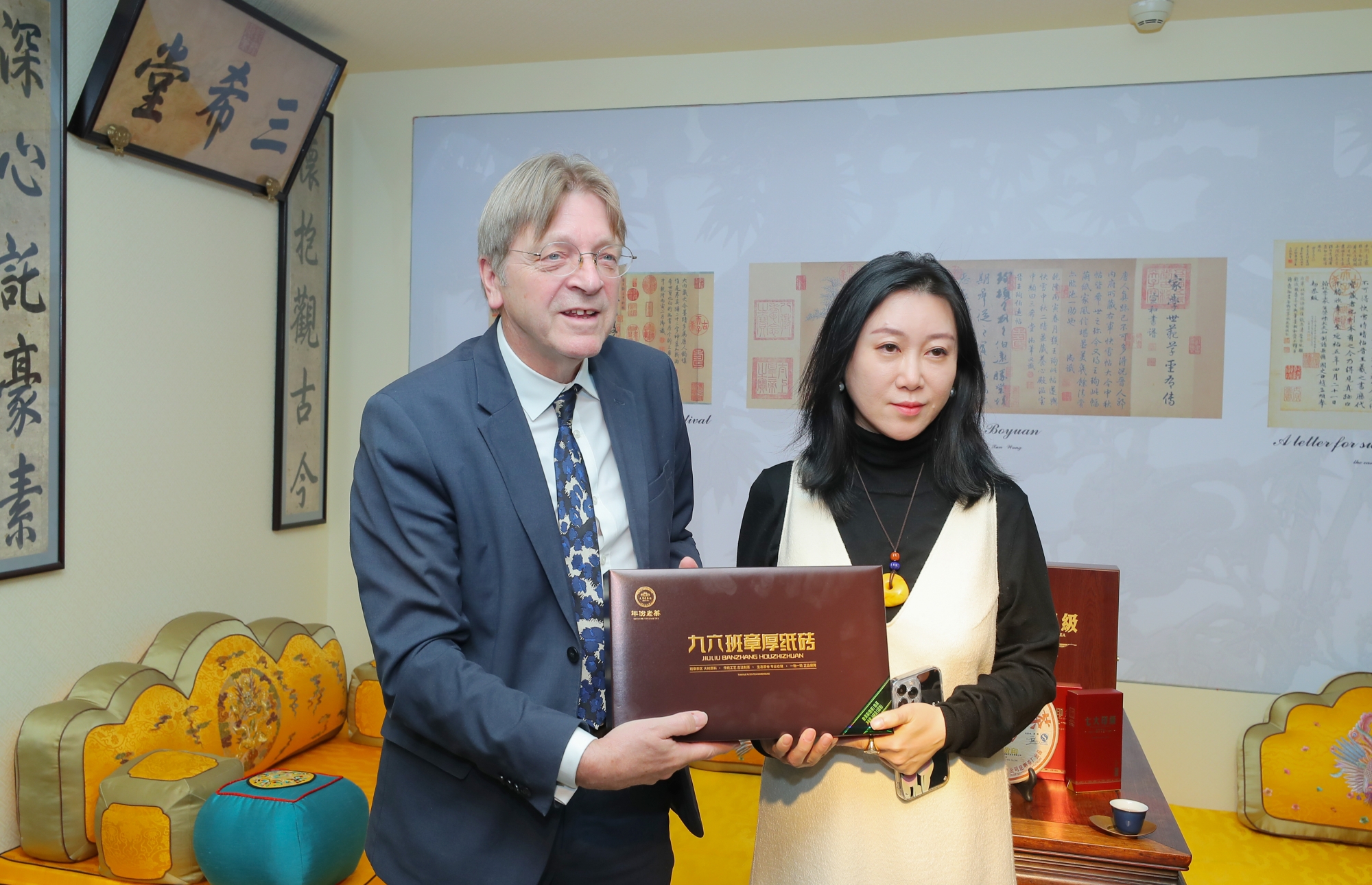 中比建交52周年之际,天月茶人以优雅茶事接待比利时前首相居伊·伏思达,共品七大印级5771普洱茶,并送上七大印级5771及天月年份茶茶礼,获得首相极高赞誉。
