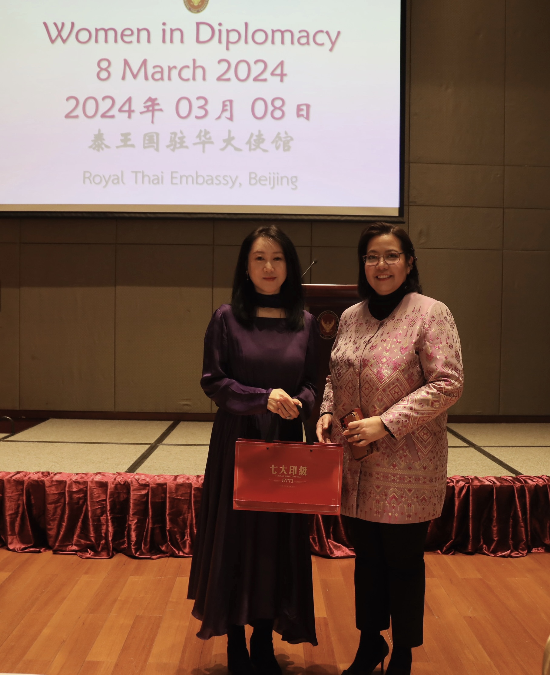 中泰建交49周年,七大印级5771作为答谢礼赠予泰王国驻华大使馆公使衔参赞潘秋月女士与黑山共和国驻中国大使馆代办丹妮拉 玖尔迪奇 戴迪奇女士。