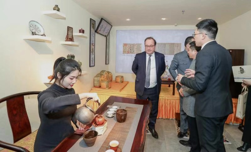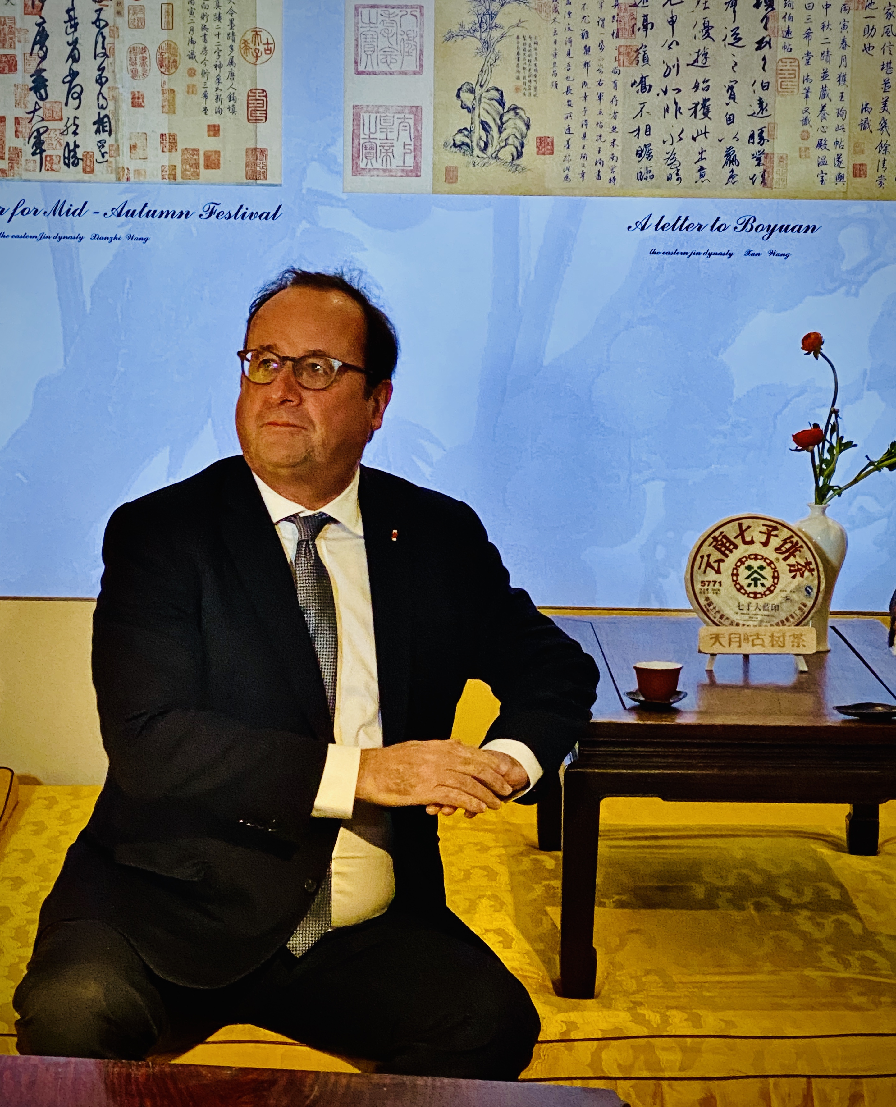 ·奥朗德,并共同品尝天月珍藏5771普洱茶。